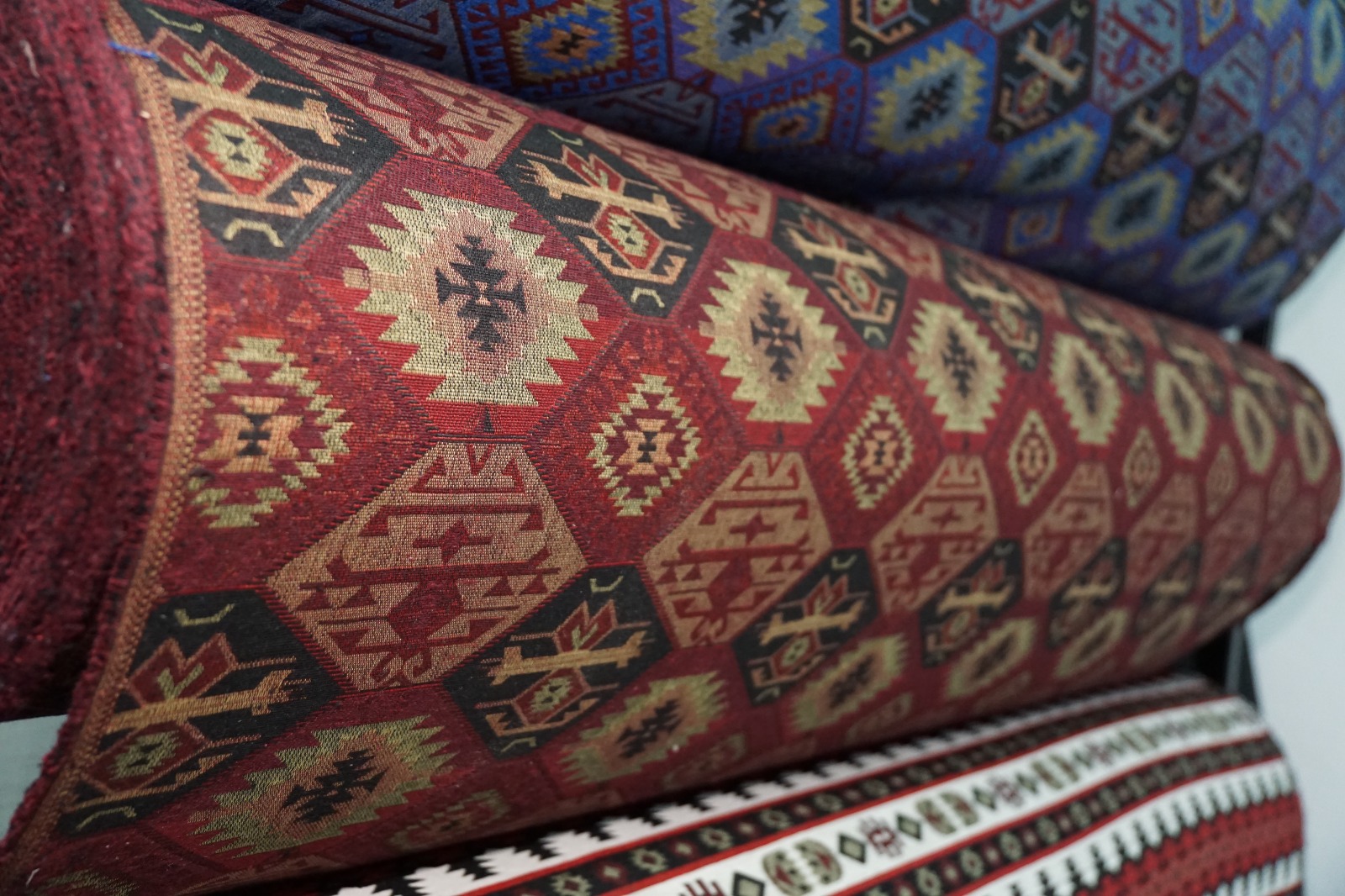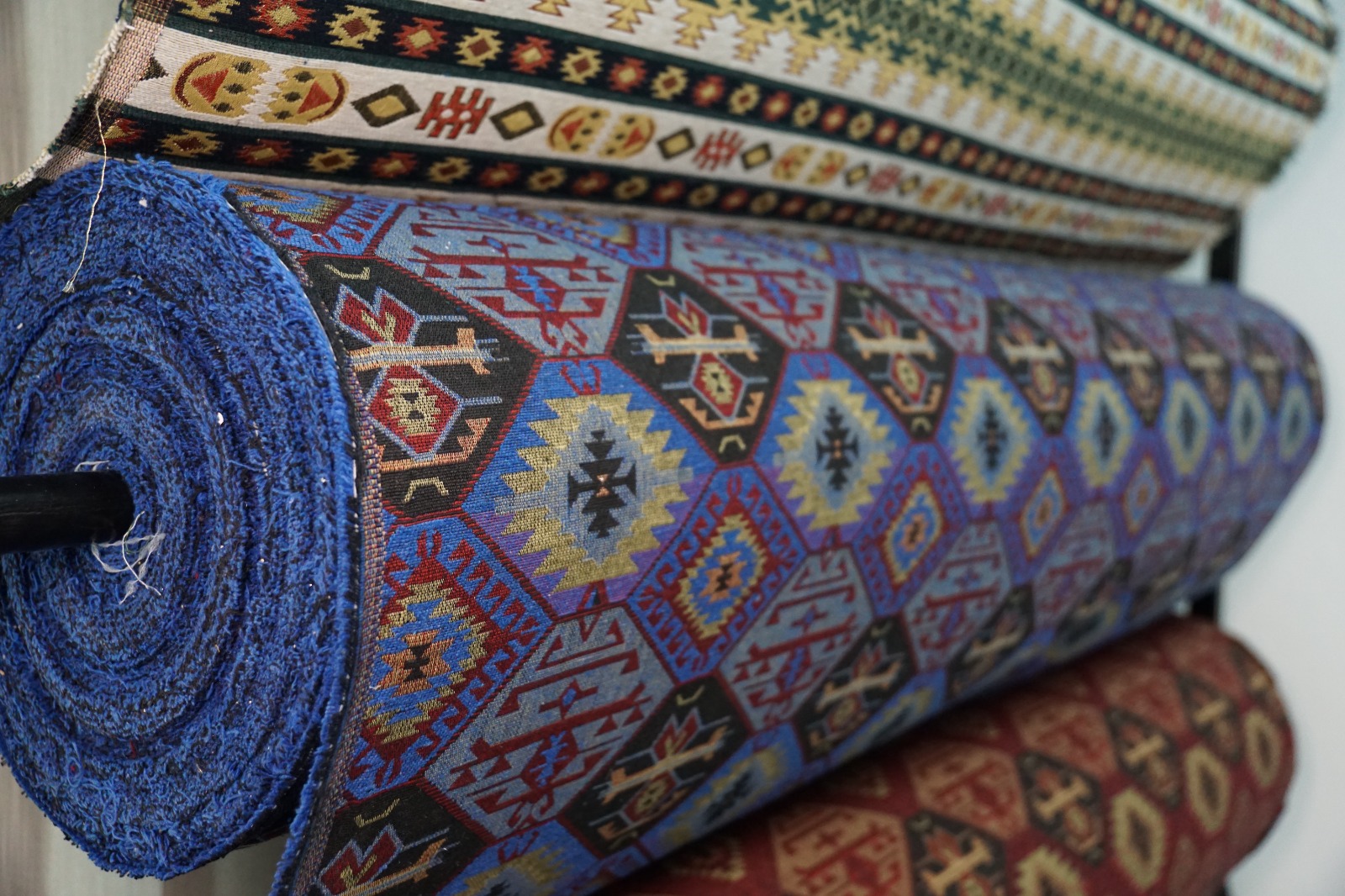 Dekorativni materijali sa etno dezenima, sirovinski sastav 50% pamuk, 50% poliester, širina 145cm.