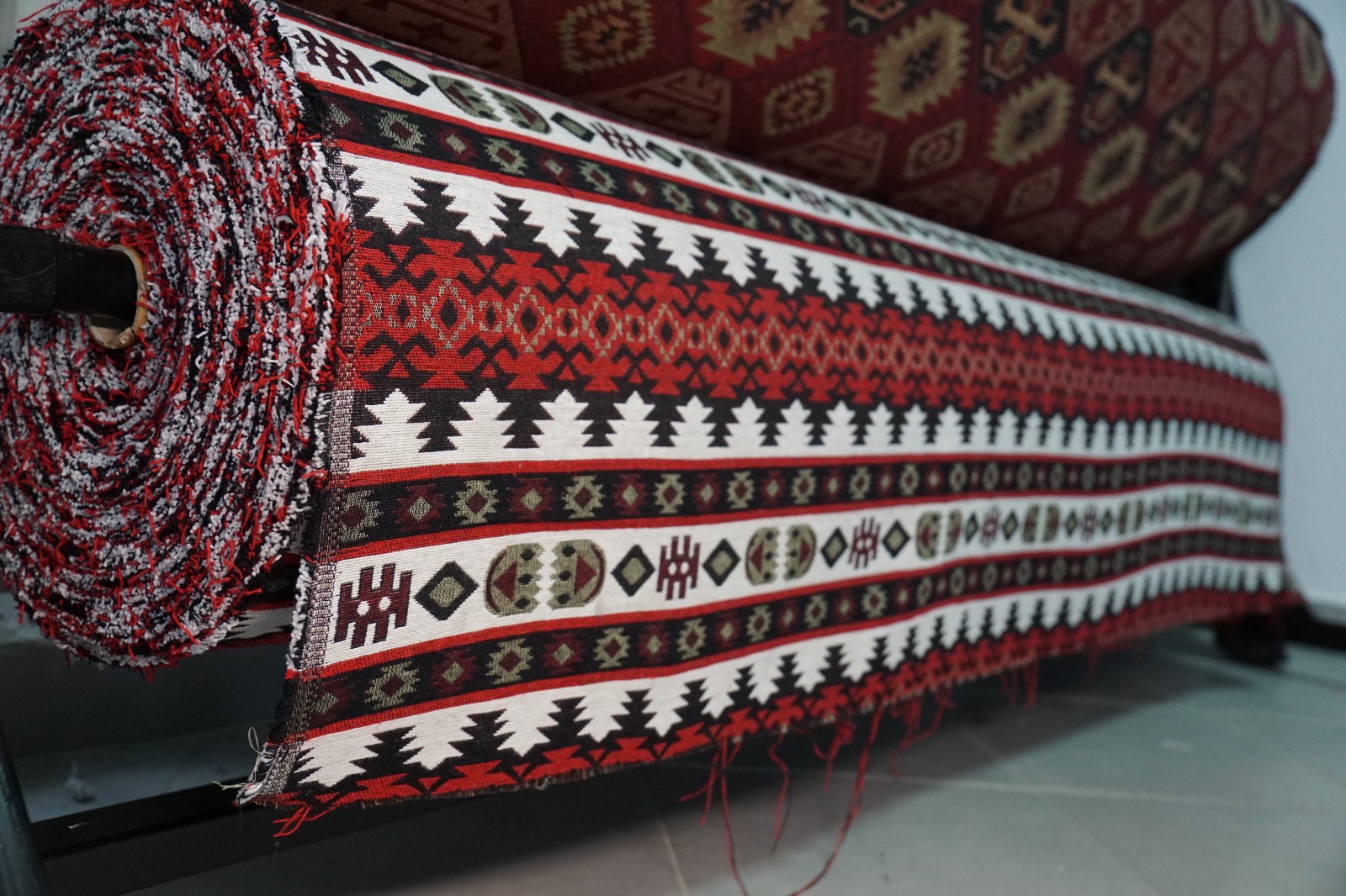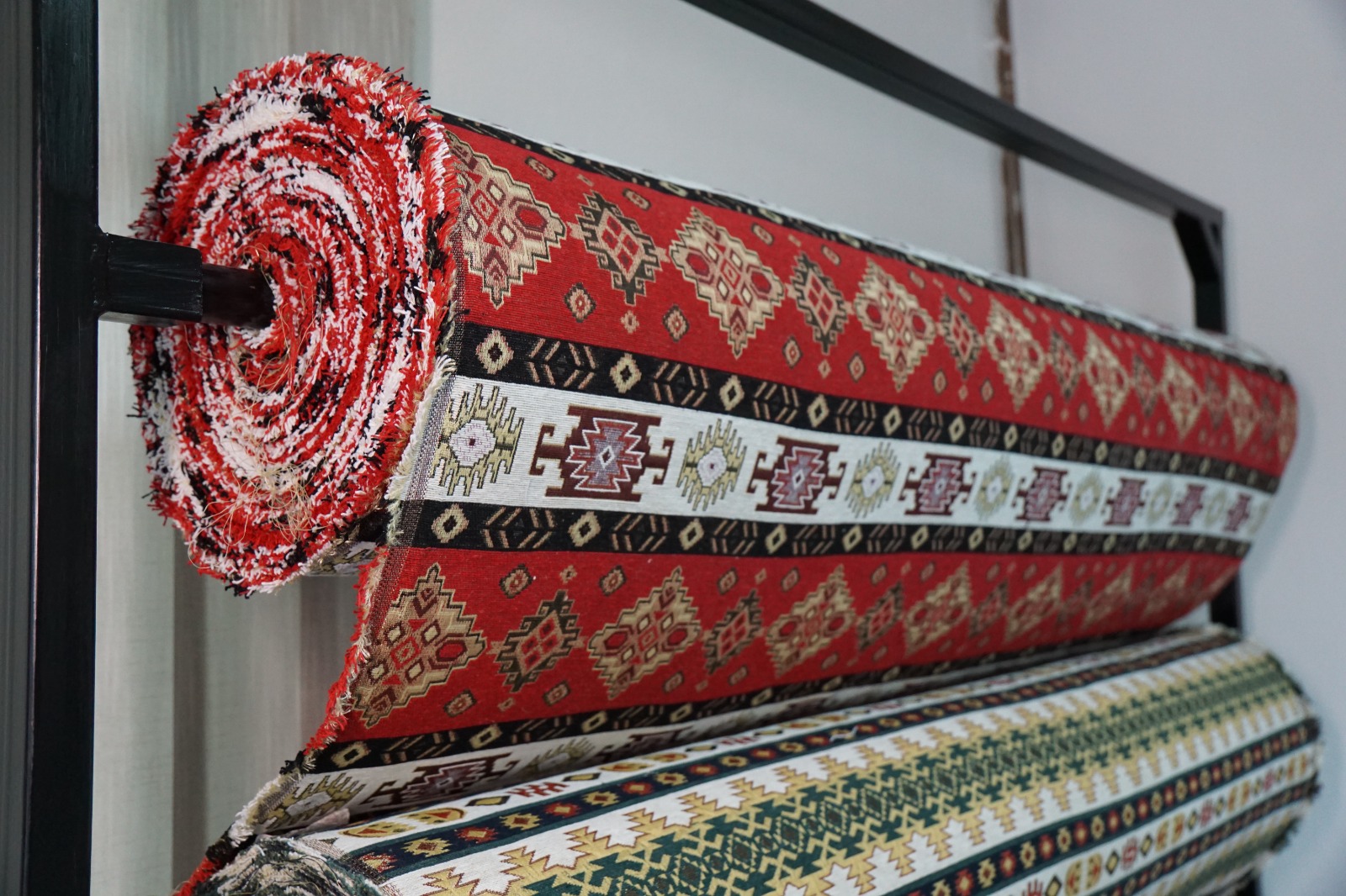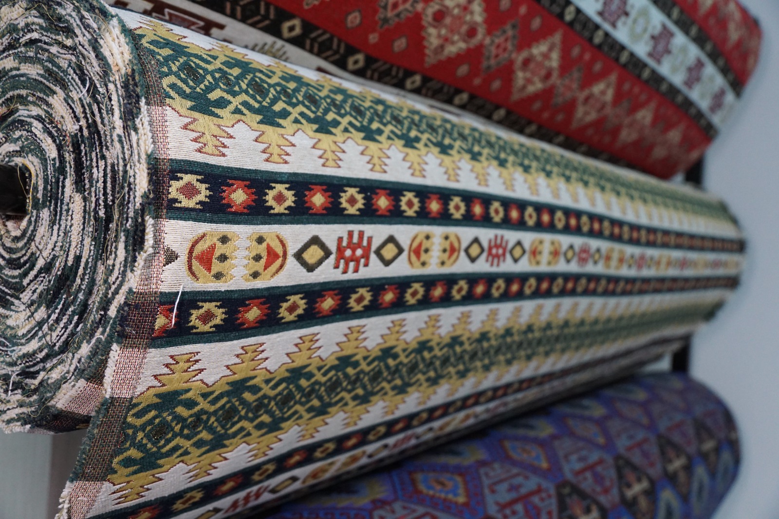 Dekorativni materijali sa etno dezenima, sirovinski sastav 50% pamuk, 50% poliester, širina 145cm.